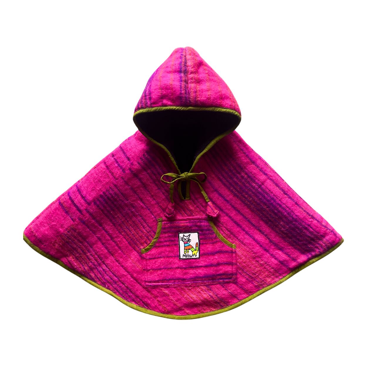 鮮やかなインド産のルディアナショールを表地に使用し、肌側(裏)には2枚重ねしたフリースを配した保温性が高く、寒い季節のキャンプやアウトドアにぴったりのポンチョです!