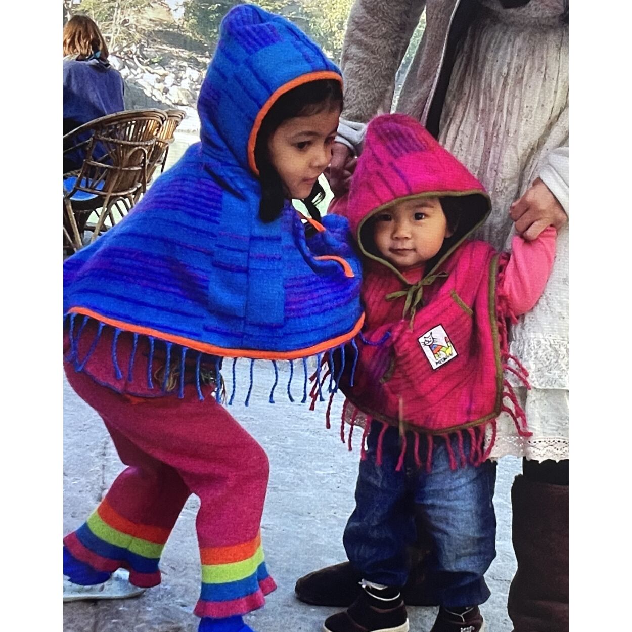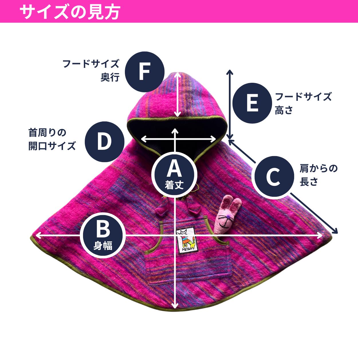 ※こちらの子供用ポンチョは、インドの職人による手作りのため、サイズには若干のばらつきがある場合がございます。目安のサイズとしてご参考にしていただければ幸いです
