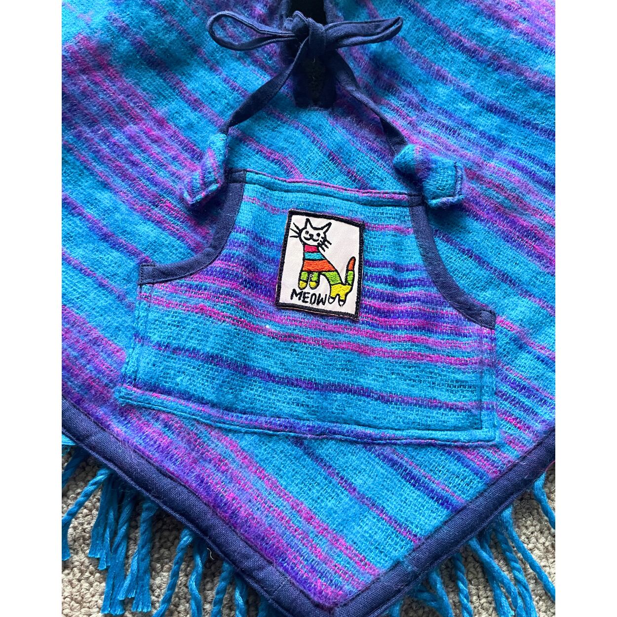 手作りの温かみと鮮やかな色合いでプレゼントにも最適なポンチョです!